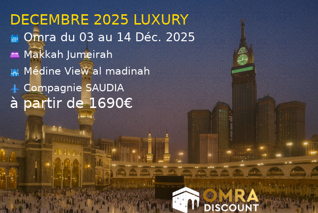 OmraDiscount.fr votre spécialiste Hajj et Omra à prix discount. Pour partir en omra moins cher et faire des économies, profitez des réductions sur Omradiscount.fr, la référence de la vente de séjours Hajj et Omra sur internet. Pionnier du secteur, SLM TRAVEL est le leader de la distribution Omra en France. Découvrez nos offres, nos séjours 5 étoiles à prix discount. Leader de la Omra sur le marché français, nos agences vous accueillent tous les jours de la semaines à Lille, Paris, Lyon, Marseille. Hôtels 5 étoiles à La Mecque et Medine, hôtels Hyatt Regency, Sheraton, Hilton Suite, Pullman Zamzam, Millenium Taiba. Une équipe expérimentée à votre écoute et à votre service, en France et en Arabie. Omradiscount.fr vous guide et vous conseille. Retrouvez l’actualité de Omradiscount.fr sur Youtube, et sur les reseaux sociaux en suivant le Facebook Omradiscount.fr et le Twitter Omradiscount.fr