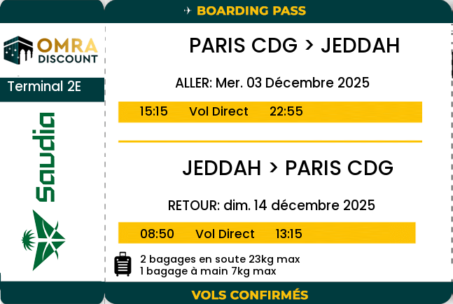 EXCELLENT Basée sur 90 avis Publié sur Myriam FaresseTrustindex vérifie que la source originale de l'avis est Google. Aucun regret quand au choix de l agence nous avons étais très bien encadré une grande bienveillance beaucoup de rappelle vraiment merci pour tous k ALLAH vs récompensePublié sur Hassan BakaTrustindex vérifie que la source originale de l'avis est Google. Equipe très organisée ! Programme respecté à la lettre + des extras en plus comme le repas , une soirée spécial palmeraie+ visites musées + conseils pratiques et commerciaux ( puces tel ) en plus ils font la réservation Rawda de Médine à la place du pélerin ! ( Créneau hyper saturé ) . Très franchement je recommande ! Ils sont au petit soin jour et nuit ! Merci à tous . اللهم باركPublié sur djenebou diarraTrustindex vérifie que la source originale de l'avis est Google. Voyage au top ! Organisation au top ! Ils sont vraiment sur la sunnah et prône le tawhid à chaque fois… c’était vraiment bien ! Guide au top. Hôtel au top ! Cependant à mon sens il manquait quelques activités ou sortie à faire en groupe. On avait pas mal de temps libre ce qui est très bien, mais peut être mettre en place un guide pour ceux qu’ils veulent faire des activités en groupe « comme faire des musées, visiter les souk, aller à la mer rouge… Mais sinon agence sérieuse !Publié sur Rizlène BarihiTrustindex vérifie que la source originale de l'avis est Google. J’ai voyagé avec OmraDiscount du 17 mars au 3 avril 2025, en pleine période de Ramadan, et tout était tout simplement parfait. L’organisation était au top du début à la fin, l’hôtel magnifique et très bien situé. Les visites étaient bien planifiées et enrichissantes. Mention spéciale pour le guide Mouloud Abou Abderahmane vraiment exceptionnel, toujours disponible et très professionnel. Je recommande vivement OmraDiscount pour une Omra sereine et bien encadrée. Merci pour cette belle expérience ! Qu’allah vous récompense grandement 🤲🏽Publié sur Wassef Ben SassiTrustindex vérifie que la source originale de l'avis est Google. Du sérieux de A à Z. Très bonne agencePublié sur Sociale InformatiqueTrustindex vérifie que la source originale de l'avis est Google. Magnifique voyage excellente organisation encore merci à Mouloud notre responsable de groupe pour sa gentillesse et sa disponibilitéPublié sur Baraa SalemTrustindex vérifie que la source originale de l'avis est Google. J’ai eu le privilège de voyager à Madinah et Mecca avec l’agence Omra Discount du 10 au 20 février, et SubhanAllah, c’était tout simplement le meilleur voyage de ma vie. L’organisation a été impeccable du début à la fin. Les guides étaient toujours présents, attentifs et à l’écoute de nos besoins. Une pensée pour Mouloud et Amine qui se sont véritablement occupés de nous comme tous les autres frères avec beaucoup de bienveillance, en veillant à ce que chaque étape de notre voyage se passe dans les meilleures conditions. Alhamdulillah, tout s’est très bien déroulé et grâce à cette agence, j’ai pu vivre une expérience spirituelle inoubliable. Je recommande cette agence à 100%. BarakAllahoufikoum pour tout ce que vous avez fait pour nous, et je n’hésiterai pas à refaire appel à vous pour une future autre Omra.Publié sur Nora OukTrustindex vérifie que la source originale de l'avis est Google. Nous sommes très satisfaits de ce beau séjour, l'organisation et la prise en charge était au top. Je remercie notre guide Hicham qui a été à la hauteur non seulement sur l'organisation et la guidance tout au long de notre séjour. Il a été disponible, bienveillant et surtout c'était l'occasion de partage de ses connaissances sur le rite d'une omra. Jahaza allah kairan ya allah.Publié sur umm amineTrustindex vérifie que la source originale de l'avis est Google. Ça a été un voyage magnifique. Qu'Allah accepte notre omra 🤲🏼 Un grand merci au guide Hassan pour son accompagnement et ses rappels quotidiens. Merci également au frère Sofiane, étudiant en sciences, pour ses dourous Jazakoumou Allahou khayran Je recommande cette agence